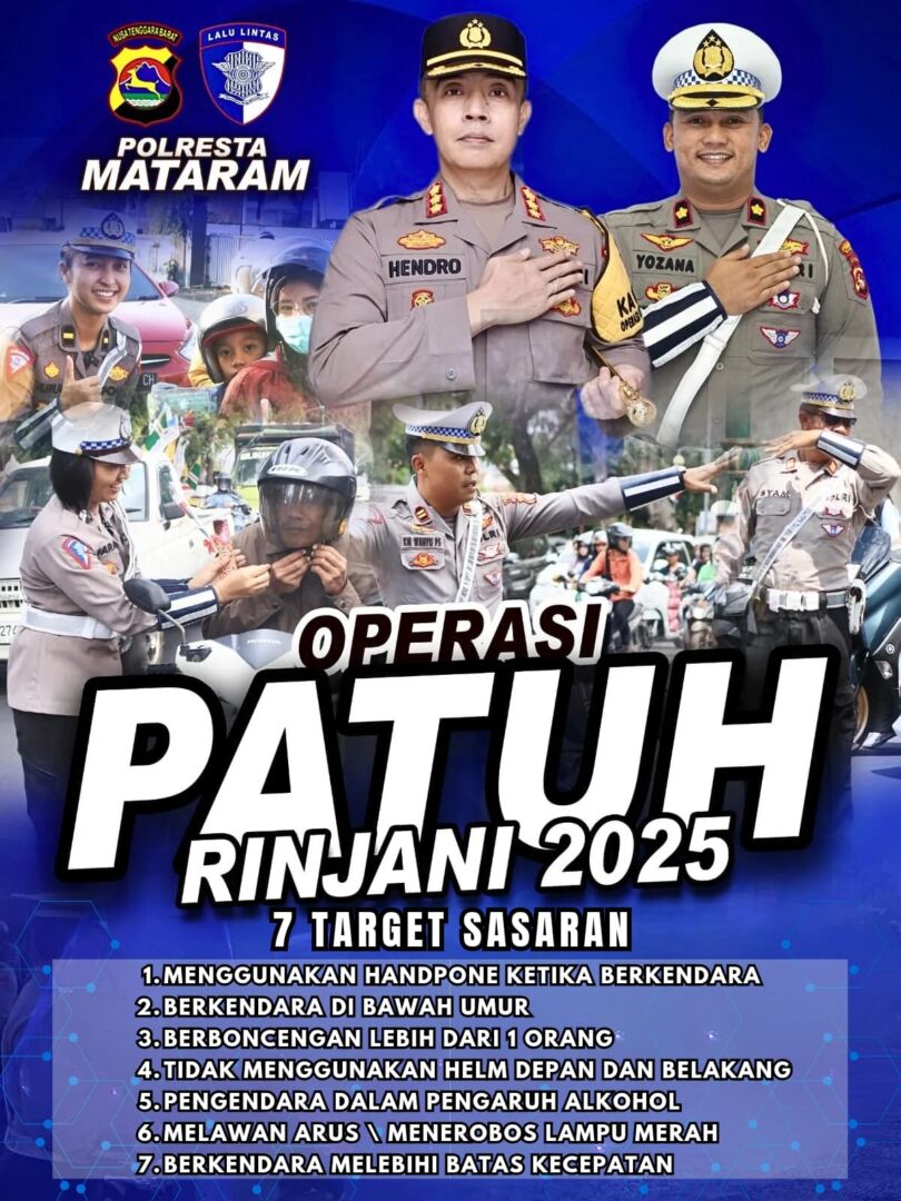 MATARAMRADIO.COM — Mulai tanggal 14 hingga 27 Juli 2025, Polresta Mataram akan rmenggelar Operasi Patuh Rinjani 2025.