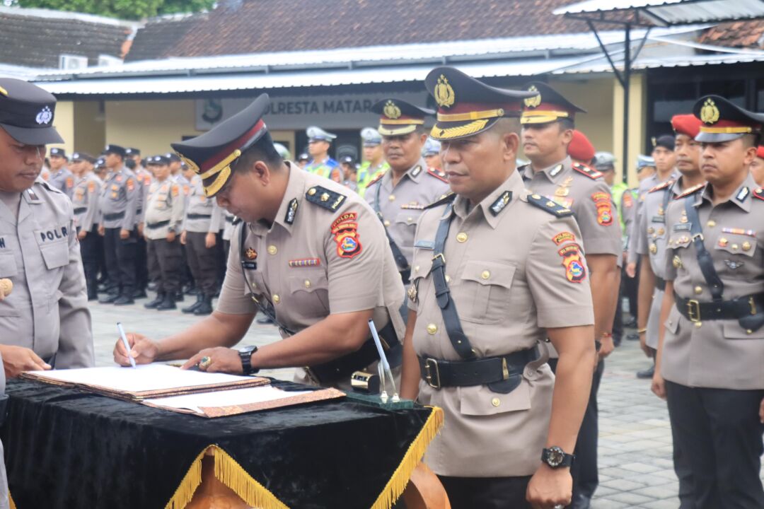 MATARAMRADIO.COM – Kapolresta Mataram Kombes Pol. Hendro Purwoko memimpin upacara Serah Terima Jabatan (Sertijab) sekaligus Pengambilan Sumpah Jabatan sejumlah Pejabat Utama Polresta Mataram pada Selasa, 16 Desember 2025.