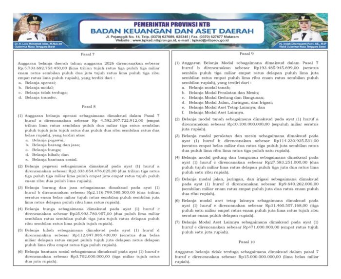 Belanja Daerah 2026 Capai Rp5,73 Triliun, Pemprov NTB Prioritaskan Layanan Publik dan Penguatan Infrastruktur (Bagian 4)