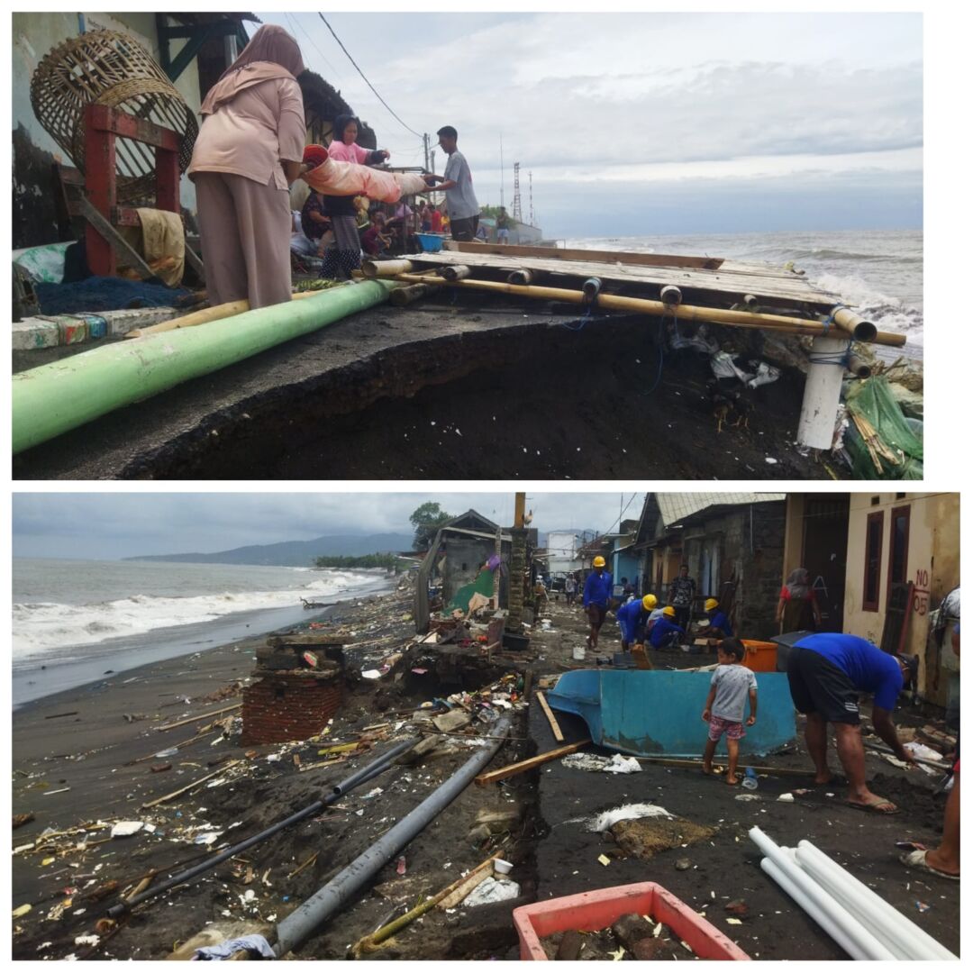 Pantauan di lapangan, rumah warga yang terdampak mengalami kerusakan sedang hingga berat termasuk jalan aspal yang biasa digunakan warga pun tergerus erosi.