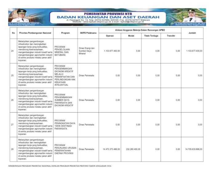 MATARAMRADIO.COM – Pemerintah Provinsi terus memperkuat komitmen pembangunan berkelanjutan melalui sinkronisasi Program Prioritas Nasional dengan Program Prioritas Provinsi Tahun Anggaran 2026.