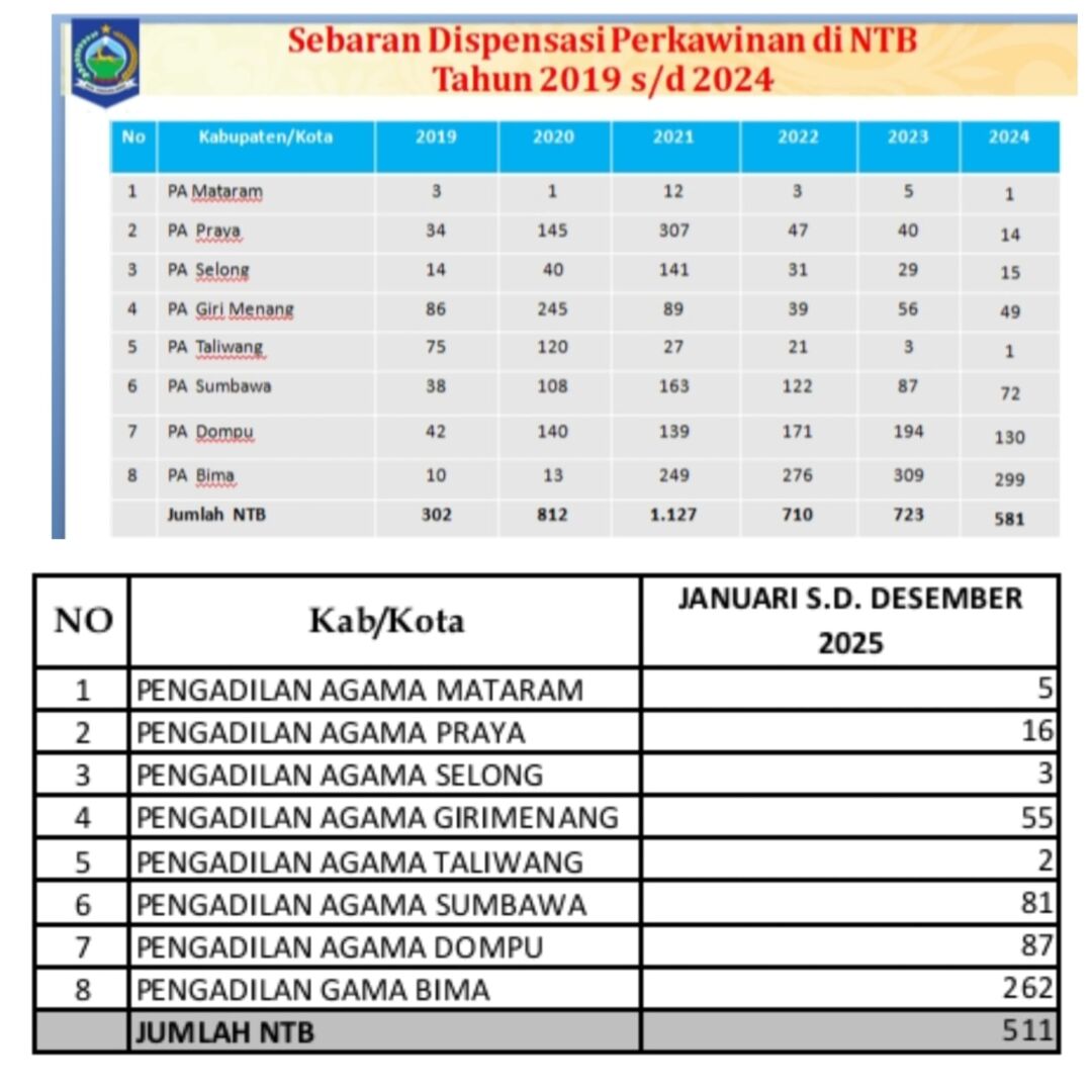 MATARAMRADIO.COM – Tingginya angka pernikahan usia anak tak lepas dari adanya dispensasi nikah yang dikeluarkan oleh pengadilan agama.
