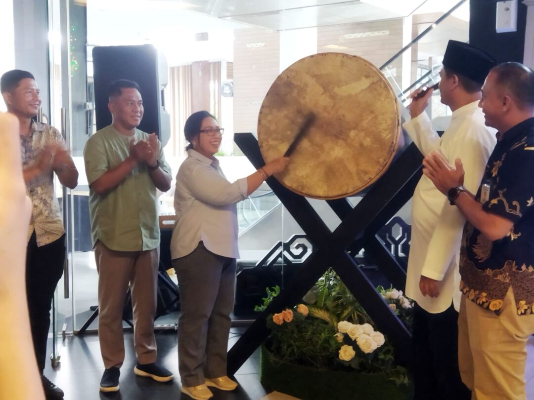 GM Aruna Senggigi, Yeyen Heryawan dan Ketua PHRI NTB,Ni Ketut Wolini dan lainnya melakukan penabuhan bedug saat launching iftar 1447H