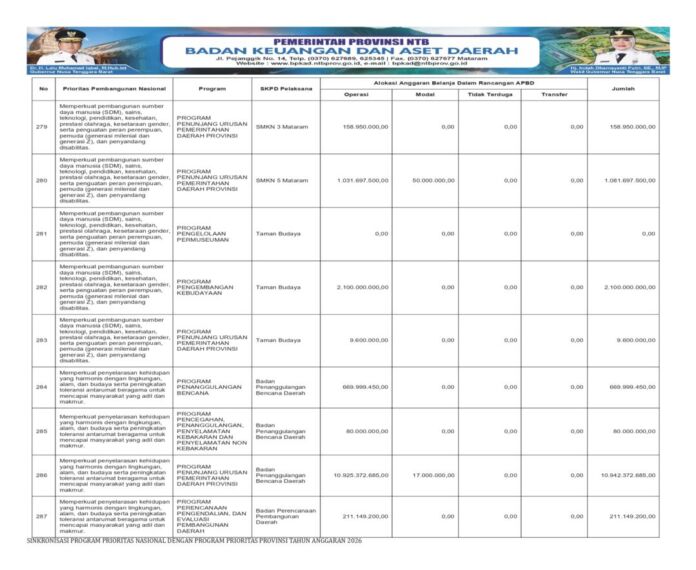 MATARAMRADIO.COM – Pemerintah Provinsi NTB terus mendorong pembangunan yang berimbang melalui sinkronisasi Program Prioritas Nasional dengan Program Prioritas Provinsi Tahun Anggaran 2026.