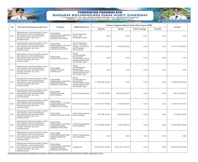 MATARAMRADIO.COM – Pemerintah Provinsi NTB terus mempercepat reformasi birokrasi melalui sinkronisasi Program Prioritas Nasional dengan Program Prioritas Daerah Tahun Anggaran 2026.